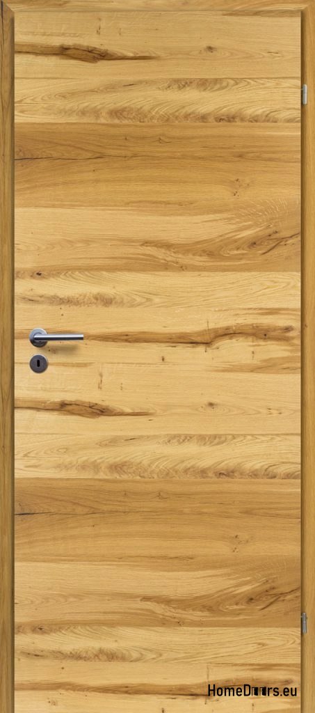 KONSTRUKCJA SKRZYDŁA: Drzwi o konstrukcji płytowej, oklejone naturalnym fornirem. Krawędzie drzwi zdobi naturalne drewno. Wypełnienie drzwi stanowi płyta wiórowa wielootworowa, wysoko prasowana. Drzwi są uszlachetnione podwójną warstwą oleju o podwyższonym parametrze odporności na ścieranie, przyjaznym dla zdrowia i środowiska.