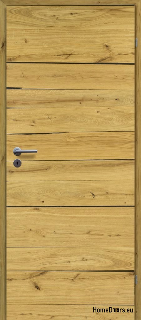 Drzwi o konstrukcji płytowej, oklejone naturalnym fornirem. Krawędzie drzwi zdobi naturalne drewno. Wypełnienie drzwi stanowi płyta wiórowa wielootworowa, wysoko prasowana. Drzwi są uszlachetnione podwójną warstwą oleju o podwyższonym parametrze odporności na ścieranie, przyjaznym dla zdrowia i środowiska.