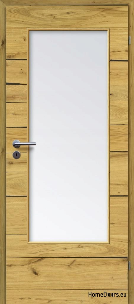 Drzwi o konstrukcji płytowej, oklejone naturalnym fornirem. Krawędzie drzwi zdobi naturalne drewno. Wypełnienie drzwi stanowi płyta wiórowa wielootworowa, wysoko prasowana. Drzwi są uszlachetnione podwójną warstwą oleju o podwyższonym parametrze odporności na ścieranie, przyjaznym dla zdrowia i środowiska.