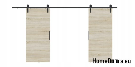 W zestawie otrzymujesz kompletne drzwi przesuwne 110 cm – skrzydło w kolorze Dębu Sonoma + czarny system przesuwny LOFT 01 + uchwyt i prowadniki.