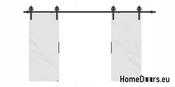 W zestawie otrzymujesz kompletne drzwi przesuwne 110 cm – skrzydło w kolorze Marmuru Białego + czarny system przesuwny LOFT 04 + uchwyt i prowadniki.