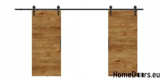 W zestawie otrzymujesz kompletne drzwi przesuwne 120 cm – skrzydło w kolorze Dębu Lefkas + czarny system przesuwny LOFT 01 + uchwyt i prowadniki.