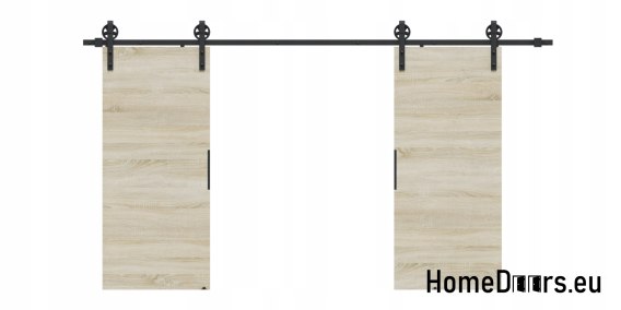 W zestawie otrzymujesz kompletne drzwi przesuwne 120 cm – skrzydło w kolorze Dębu Sonoma + czarny system przesuwny LOFT 04 + uchwyt i prowadniki.