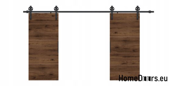 W zestawie otrzymujesz kompletne drzwi przesuwne 120 cm – skrzydło w kolorze Orzechu + czarny system przesuwny LOFT 04 + uchwyt i prowadniki.