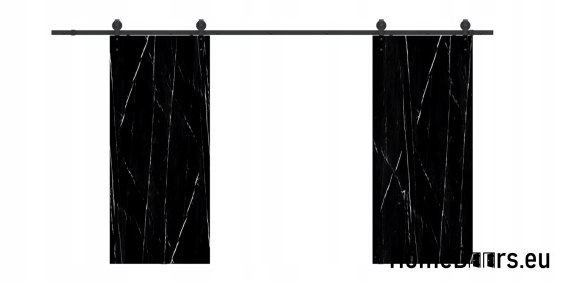 W zestawie otrzymujesz kompletne drzwi przesuwne 140 cm – skrzydło w kolorze Czarnego Marmuru + czarny system przesuwny LOFT P-01 + uchwyt i prowadniki.