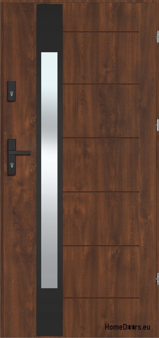 LAUSANNE NERO venkovní dveře se zrcátkem, TLUSTÉ teplé 72mm, REGÁLOVÉ, 90 P