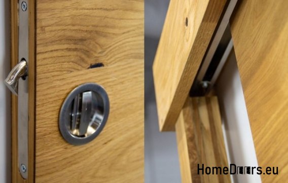 Nowoczesny naścienny system przesuwny, składający się z prowadnicy, odbojnicy i zamka hakowego w wersji łazienkowej lub